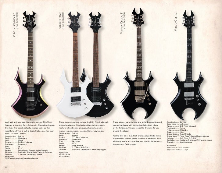 Bc rich guitars models. Banking on this principle, BC Rich introduced a new guitar to its lineup in 1978 the Bich The flying angles, distinctive triangle cutout from the back of the body, and the eventual 10string design of the Bich all scream rock n‘ roll The Bich would go on to become BC Rich’s most successful product to date. BC Rich is an American brand of acoustic and electric guitars and bass guitars founded by Bernardo Chavez Rico in 1969 The company started to make electric guitars in the 1970s that were notable for their atypical body shapes. Numerous rock musicians choose BC Rich Guitars to craft their sound Buy yours today and receive free shipping and the guaranteed lowest price.