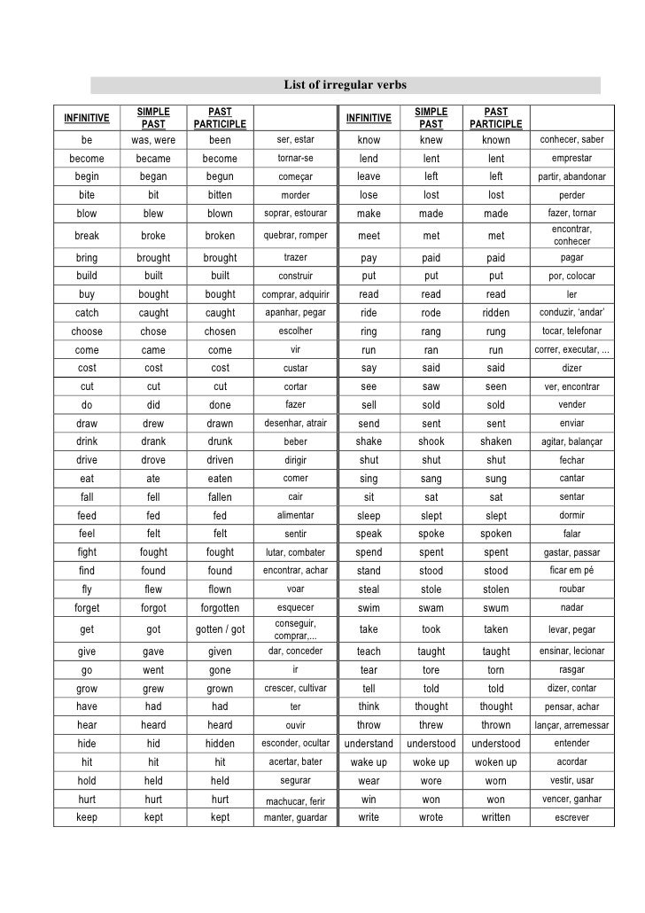 List Of Irregular Verbs In Infinitive Past Simple And Past Participle