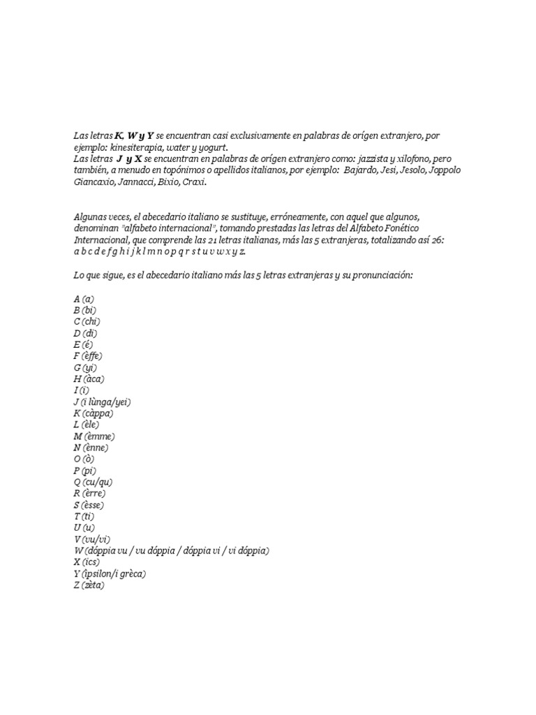 Las Letras Que Componen El Abecedario O Alfabeto Italiano Son 21 Alfabeto Linguistica