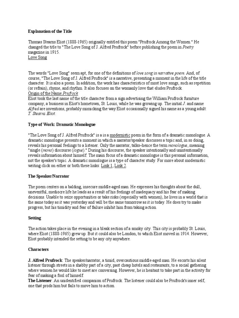 The Love Song Of J Alfred Prufrock Poem Summary And Analysis Litcharts