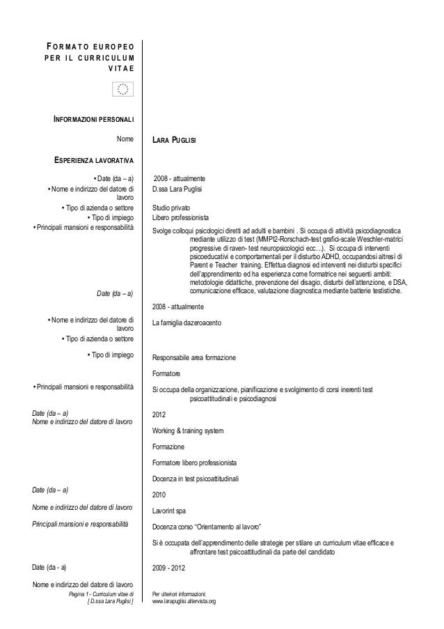 Formato Europeo Per Il Curriculum Vitae Da Scaricare Pdf