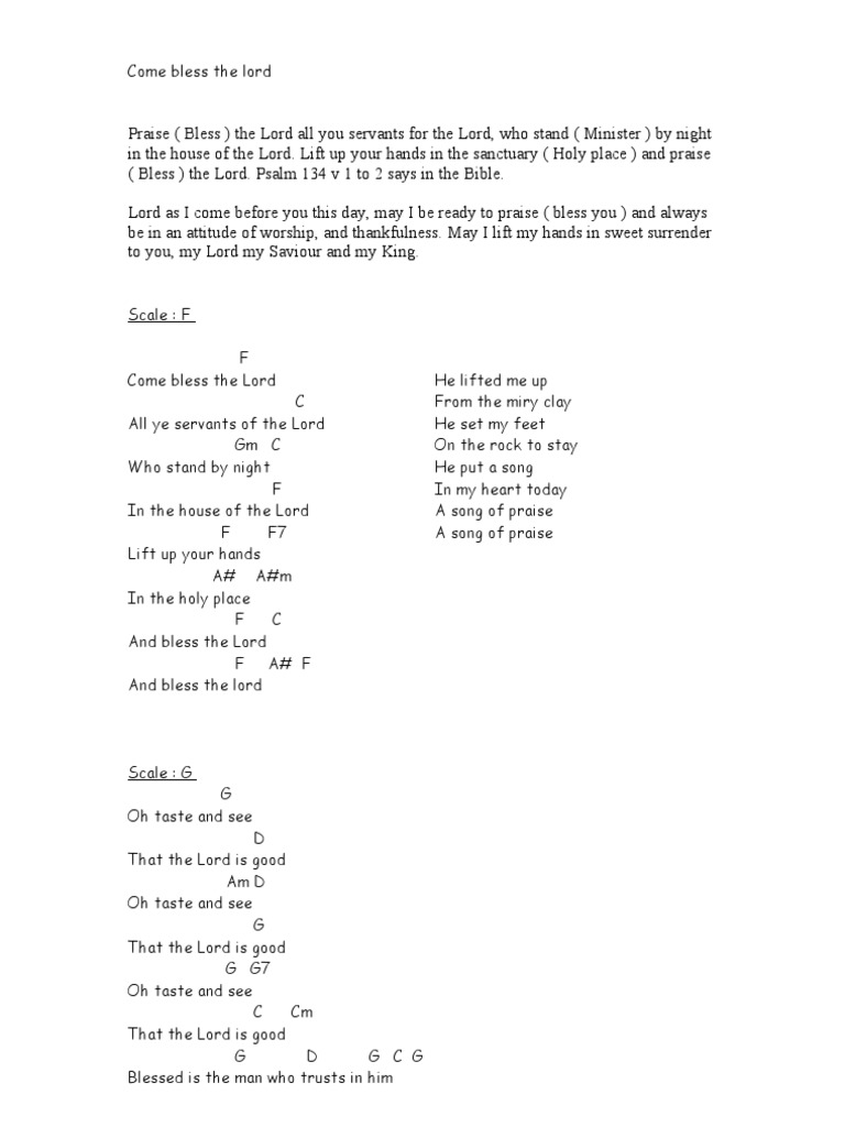 Bless The Lord Oh My Soul Lyrics And Chords Key Of F