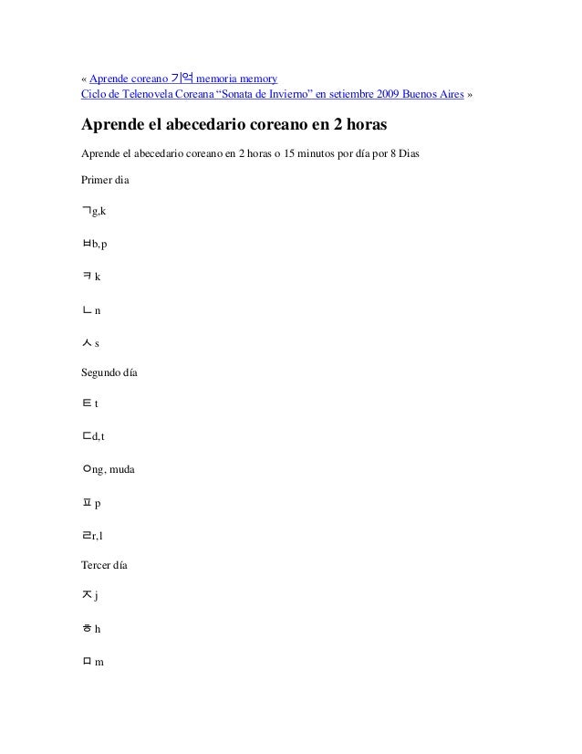 Abecedario Coreano En Espanol Abecedario Coreano