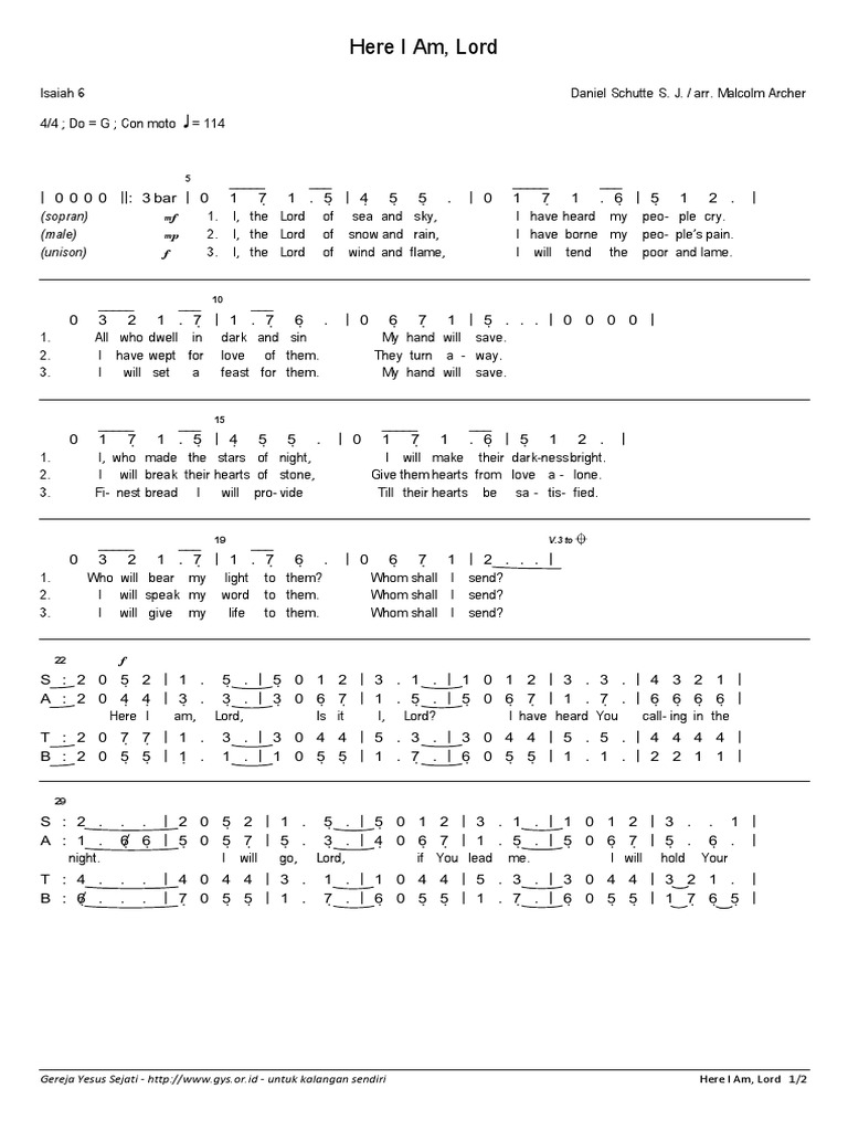 Here I Am Lord Lyrics And Music By Dan Schutte Arranged By Swtasian