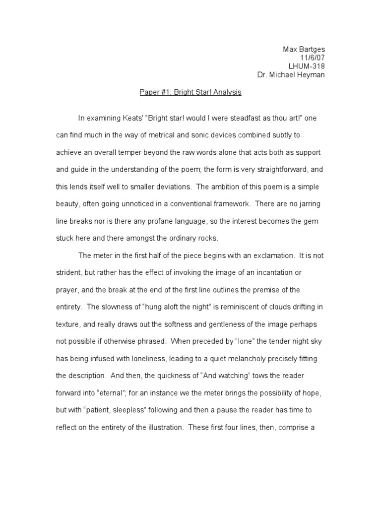 Commentary On Sonnet Bright Star By John Keats International Baccalaureate Languages Marked By Teachers Com