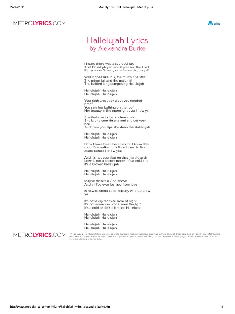 Hallelujah alexandra burke lyrics. Alexandra Burke Actress | Alexandra Burke:. The Wider repertoire are suggested Free Choice Pieces that may be used along side the Vocal syllabus songs. Du hast gesehen, wie sie auf dem.
