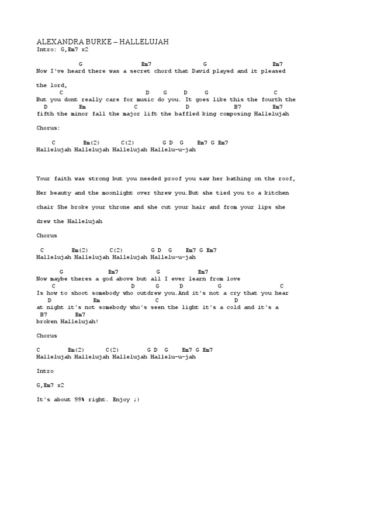 Hallelujah Chords Alexandra Burke Sheet And Chords Collection